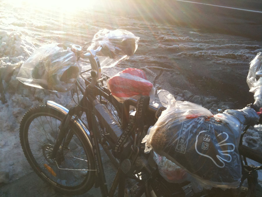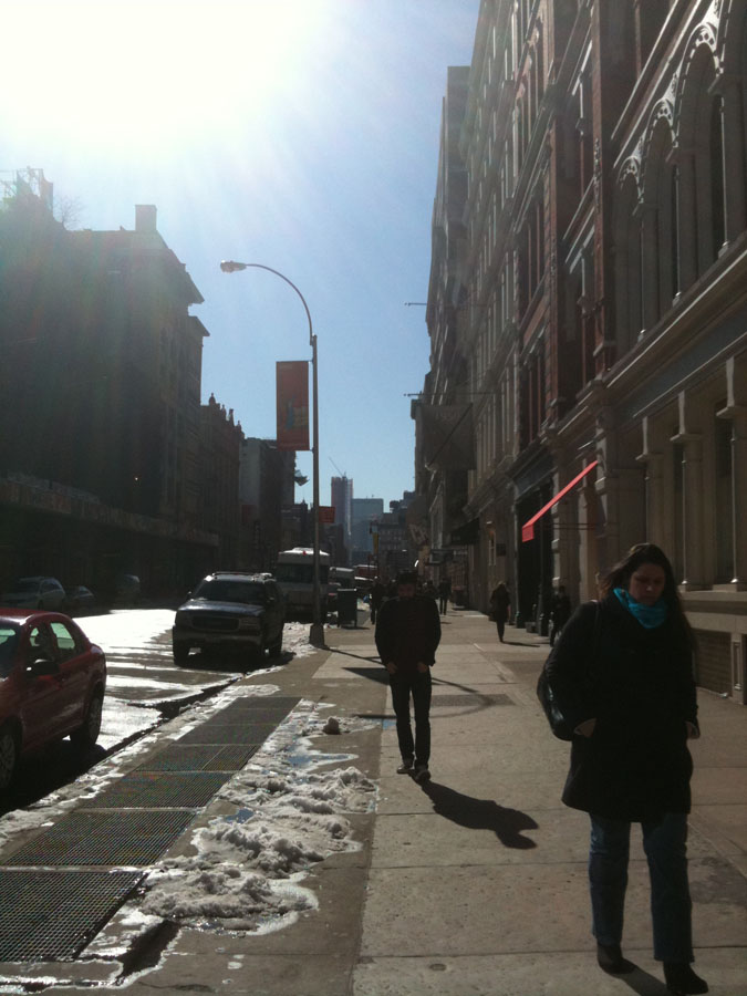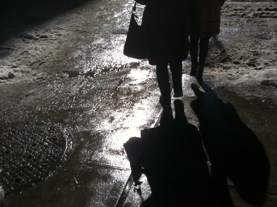 Starting at 8:15 am, I was originally supposed to have a succession of five different meetings throughout today, but wound up going to three. It was clear and sunny again, but not warm enough to melt the slush and ice on the streets.