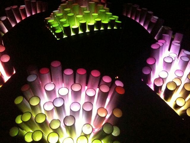 Installation at the Bring to Light Festival of several tv sets with PVC tubes adhered onto the screens. The tvs were playing ordinary videos of randomness and the tubes filtered out the colors in a really beautiful way.